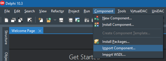 1. 델파이 메뉴에서 "Component -> Import Component" 클릭.