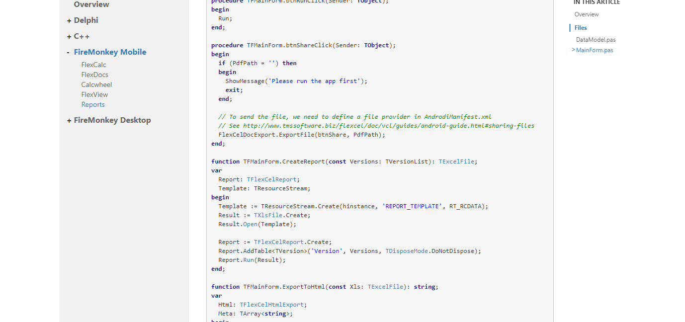 http://www.tmssoftware.biz/flexcel/doc/vcl/samples/firemonkey-mobile/reports/index.html