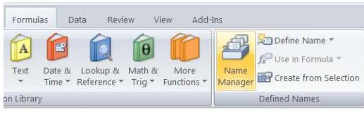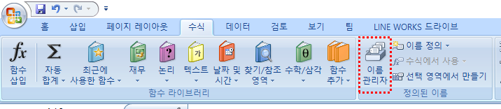 또는 Excel 2007에서는 리본 메뉴의 "수식"탭으로 이동하여 "이름 관리자"를 누릅니다.