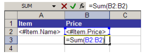 따라서 새 템플릿을 만들고 제목 행을 정의하고 A2 : B2에 명명 된 범위를 삽입하여 데이터를 전파하지만 모든 항목의 총 비용을 모두 알고 싶으므로 B3에 수식을 추가합니다.