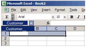일단 셀 A1 : C1에 밴드 __Customer__를 정의 할 수 있으며 이름이 정의되면 이름 콤보에서 쉽게 볼 수 있습니다.