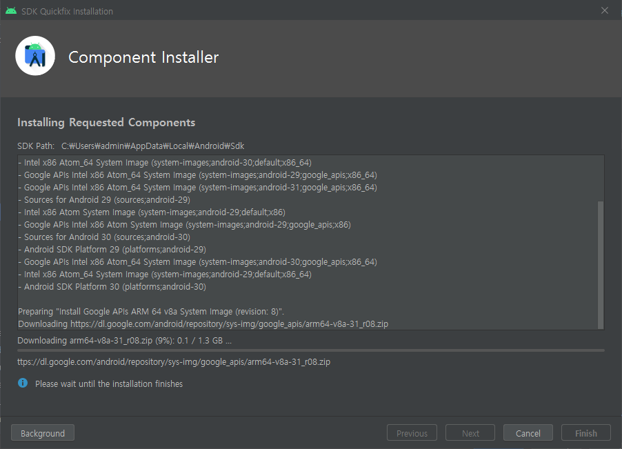 자신의 안드로이드 SDK 위치를 확인할 수 있습니다.