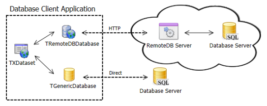 TMS RemoteDB를 사용하면 TXDataset이라는 TDataset 자손을 사용하여 데이터베이스 서버가 아닌 원격 HTTP 서버에서 SQL 작업을 수행하는 데이터베이스 응용 프로그램을 만들 수 있습니다. 따라서 기존 Delphi 클라이언트 - 서버 응용 프로그램을 소스 코드의 변경을 최소화하면서 3 계층 응용 프로그램으로 쉽게 변환 할 수 있습니다.